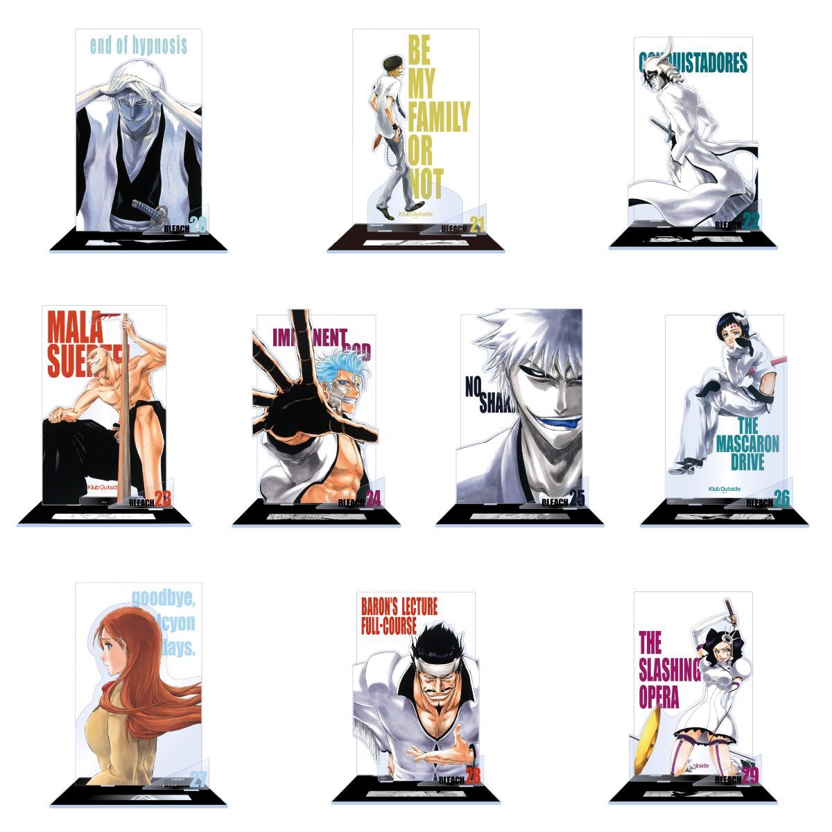 采用单行本封面插画的亚克力立牌收藏系列,包含再贩商品在内,终于集齐全部卷数!